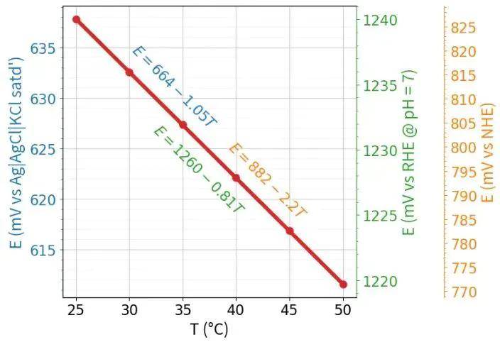 温度效应:温度系数为-0.846 mV/K(298 K基准)。例如:303 K时电势降至1.226 V。