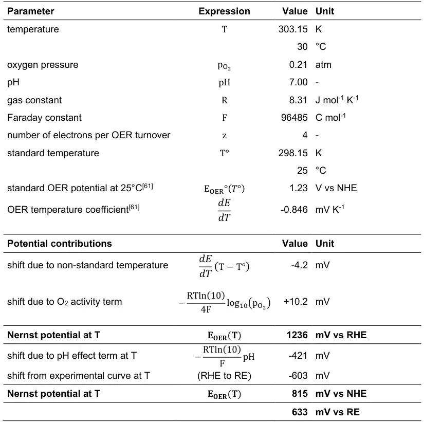 通过Debye-Hückel理论和不同离子强度下的电势插值法,测得OER标准电势为1.229 V vs. SHE;方式二:使用红氧电池(redox cell)结合金电极或汞电极,在标准条件下直接验证该值。