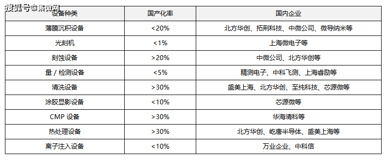 不同类型的半导体设备国产化率呈现出差异化的态势。