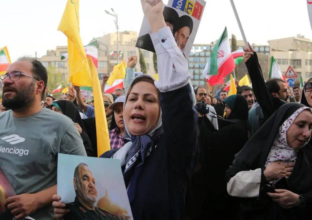6月24日,民众在伊朗首都德黑兰革命广场庆祝伊以停火。新华社发