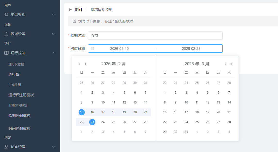 春节假日时间设置