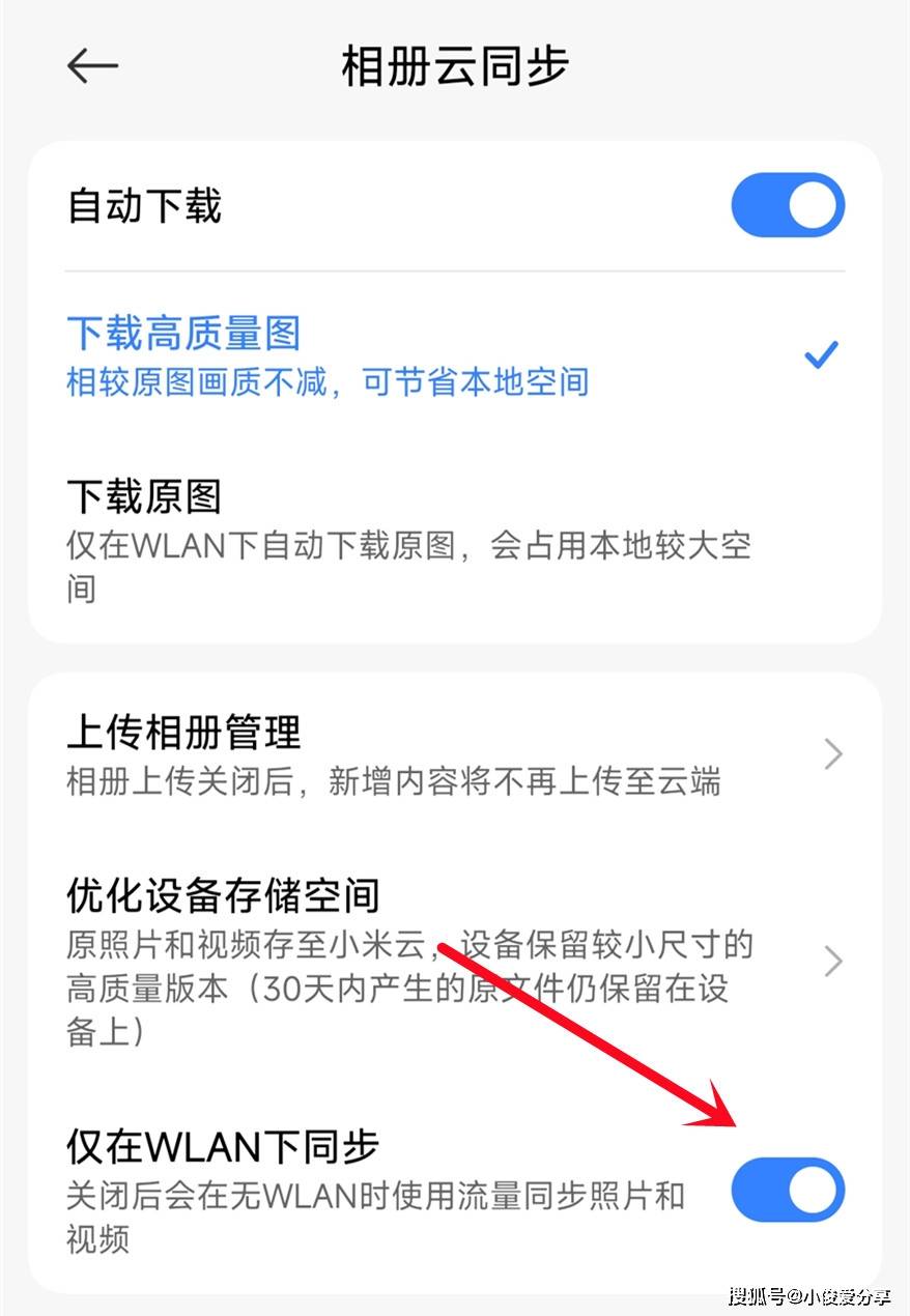 打开【设置】→ 找到【云服务】→ 点击【照片/视频同步】→ 关闭“移动网络下同步”,只保留“仅在WLAN下同步”即可。