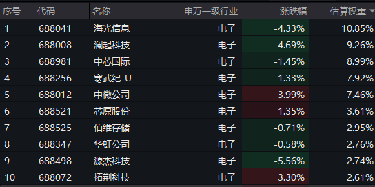 【科创芯片50ETF(588750)标的指数前十大成分股】