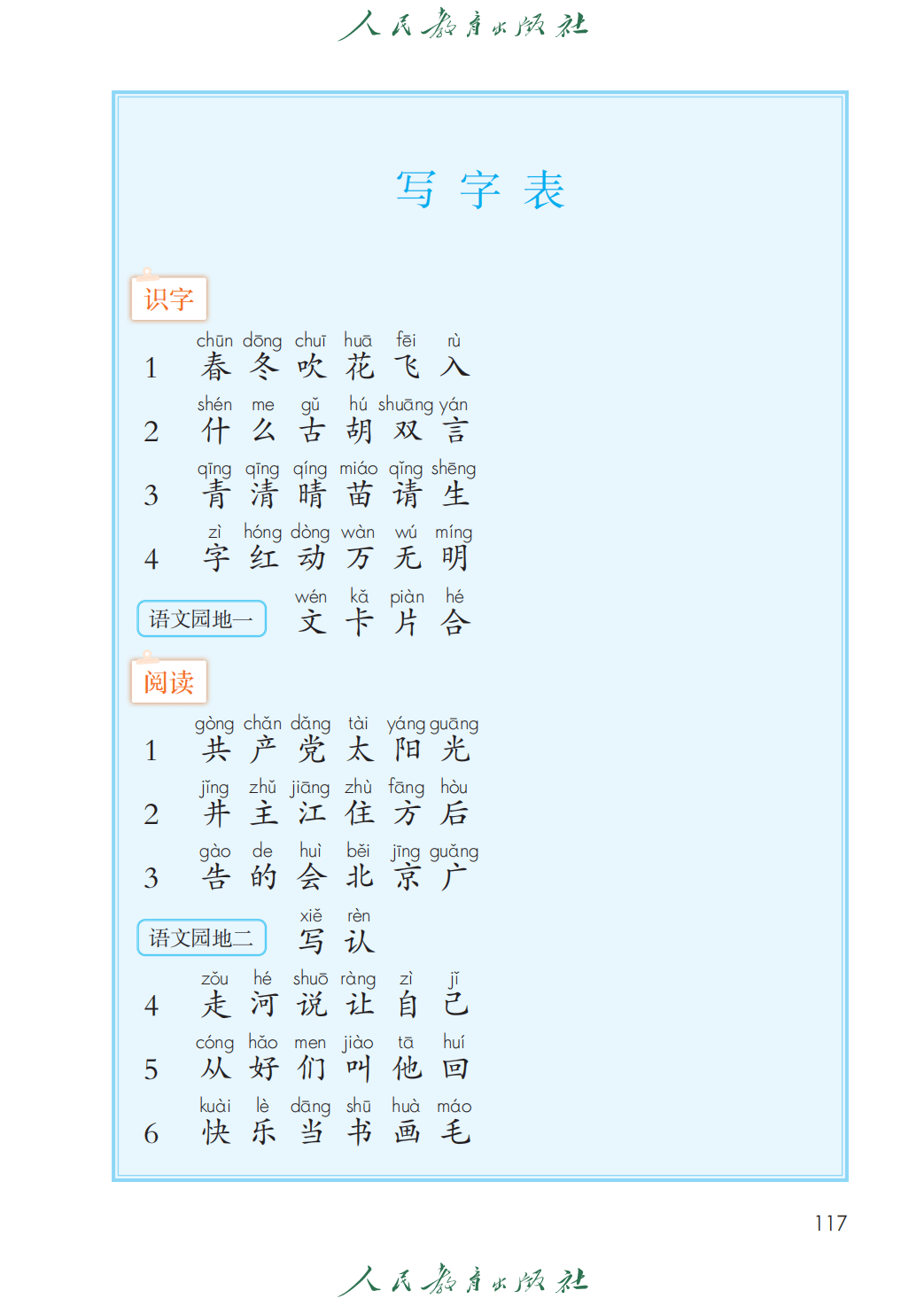 人教部编版一年级语文下册电子课本图片版在线阅读