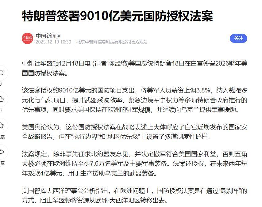 37万亿美元的债务,既是经济账,也是实力账。那段时间,美国国会内部争论不休,一些议员愤怒地拍桌子说:我们已经有37万亿美元的国债了!这个数字如一座大山,压得人喘不过气来。与此同时,五角大楼也开始做起了推演,得出的结论很清晰:西太平洋的军事平衡,早已不再是十年前的模样。白宫官员更是直言不讳,表示现阶段的资源优先保障本土安全,否则财政危机可能随时爆发。因此,2025年底通过的国防授权法案,虽然金额高达9010亿美元,但其中并没有提到直接介入台海这个问题。这一变化,显然是美国内外形势的折射。