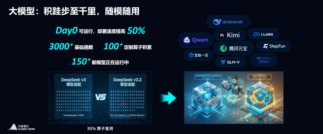 截至目前,天数智芯的通用GPU已经稳定运行400余种主流模型,并且强调Day 0适配能力;以DeepSeek为例,其在天数智芯平台上的适配和推理,已经成为客户实际部署的一部分。