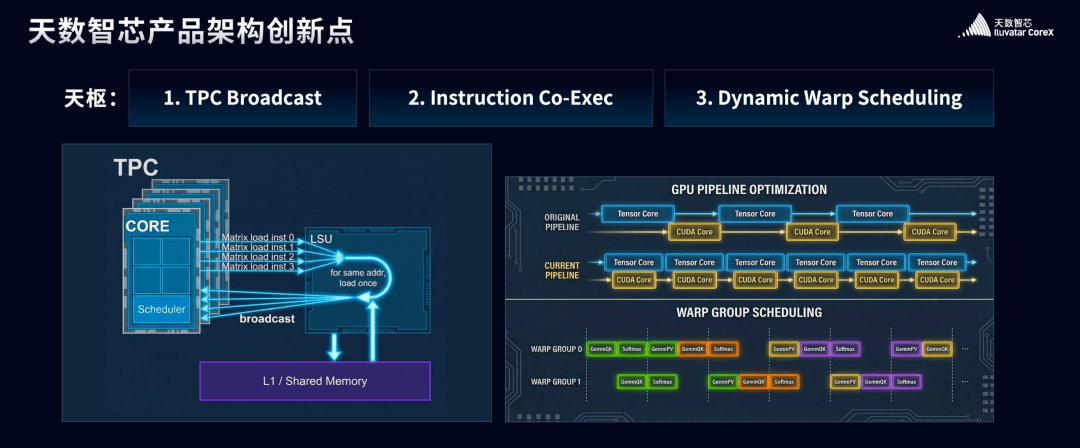 包括TPC Broadcast、Instruction Co-Exec、Dynamic Warp Scheduling在内的多项技术,构成了天数智芯在指令级并行、资源调度和算力利用率上的核心优势。