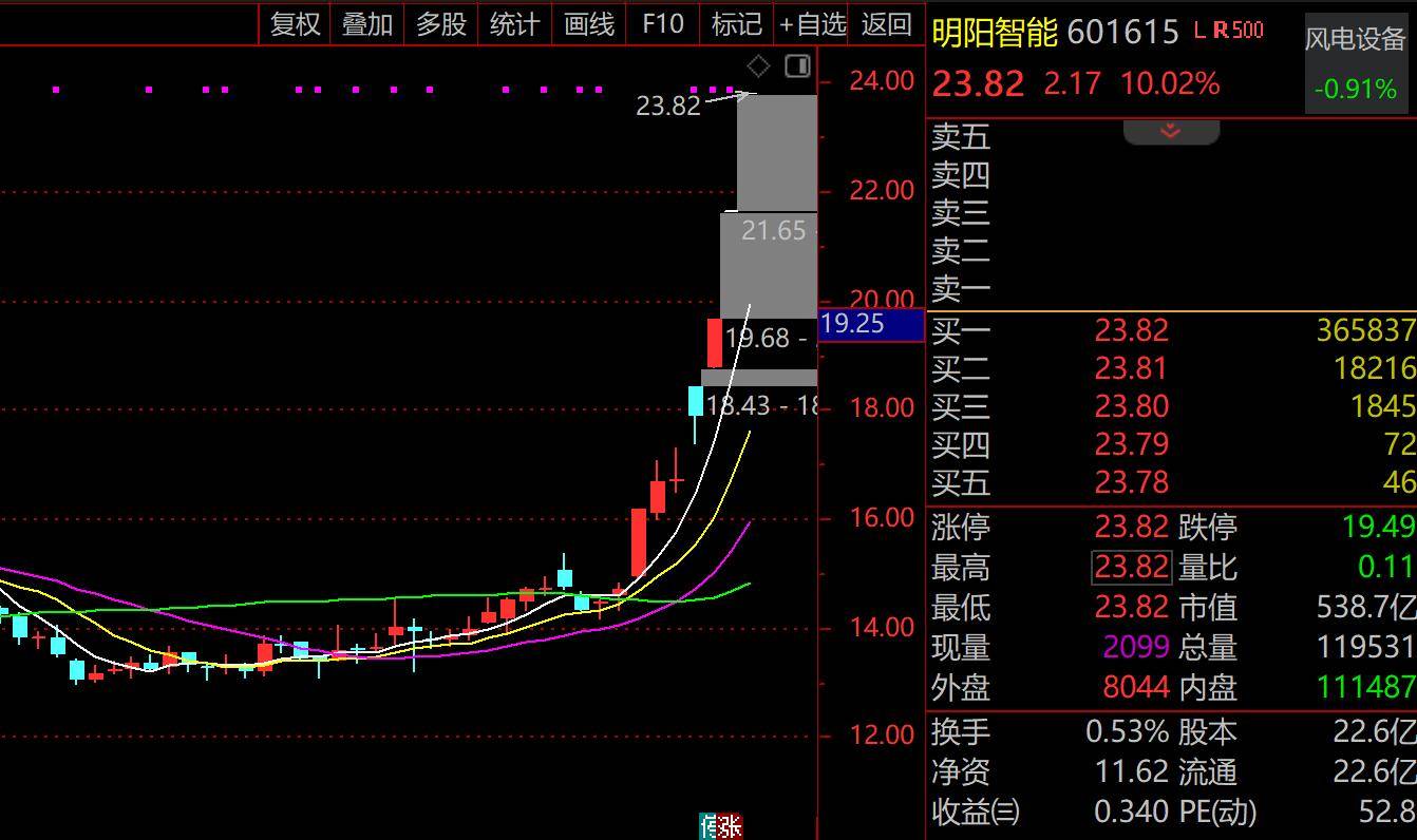 2026年1月26日,明阳智能(601615)再度股价异动,当日涨幅达10.02%,股价单日上涨2.17元,连续3天封死涨停板,走势强势。