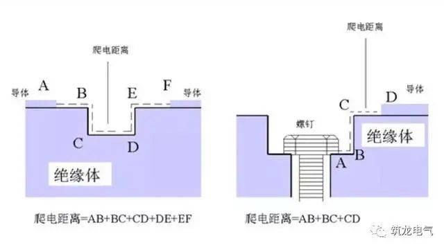 答:电器中具有电位差的相邻两导电部件之间,沿绝缘体表面的最短距离。