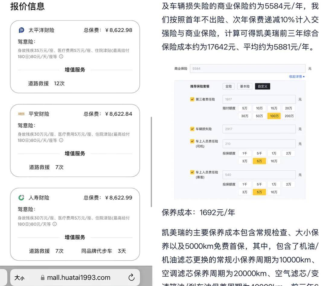 而根据我们和多位车主接触,没出险的情况下,特斯拉第二年的保费可以降到5500元左右,但凯美瑞的报价则为5000元以内。这高出的部分,实实在在地侵蚀着电车在能源上省下的优势。