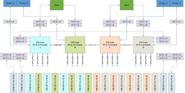 支持多主机、端到端和非透明传输模式,可无缝适配数据中心、超低延时AI服务器、高性能计算及企业级存储等全场景应用。