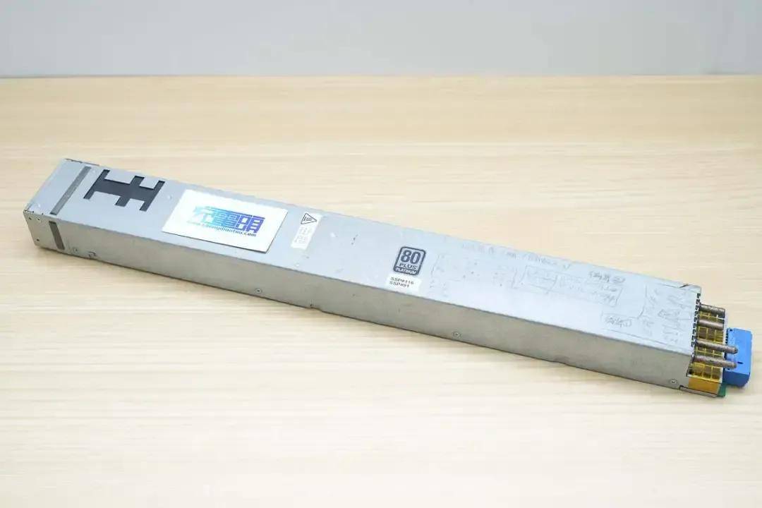 这款服务器电源大约为2014年以后生产,为12V输出,输出电流为91.6A,最大输出功率为1100W,通过了80 PLUS 白金标准。另外这款电源提供12V待机电源,输出电流为3A。电源为砖块造型,采用PCB金手指连接器。