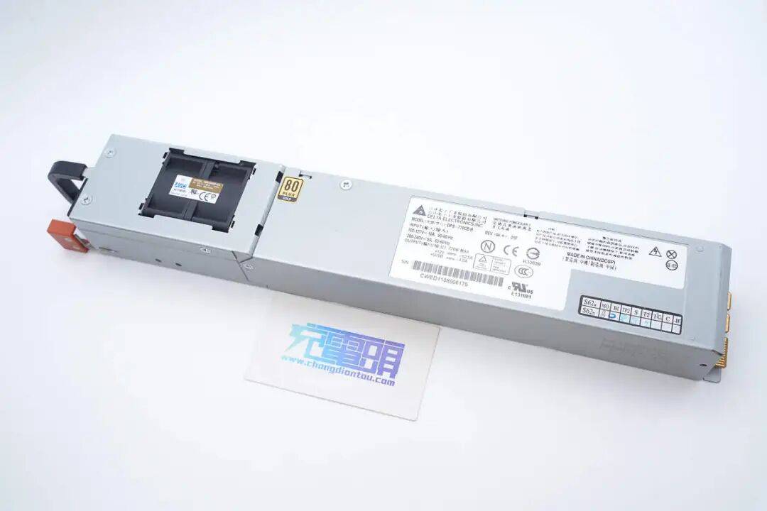 台达这款电源型号为DPS-770CB,支持100-127V和200-240V输入电压,输出电压为12V,输出电流62.5A,待机电源输出为5V,输出电流4A,额定输出功率为770W。这款电源采用长条形机身设计,内部设有散热风扇。电源输入端设有指示灯,安装提手和电源插座,输出端设有金手指连接器。