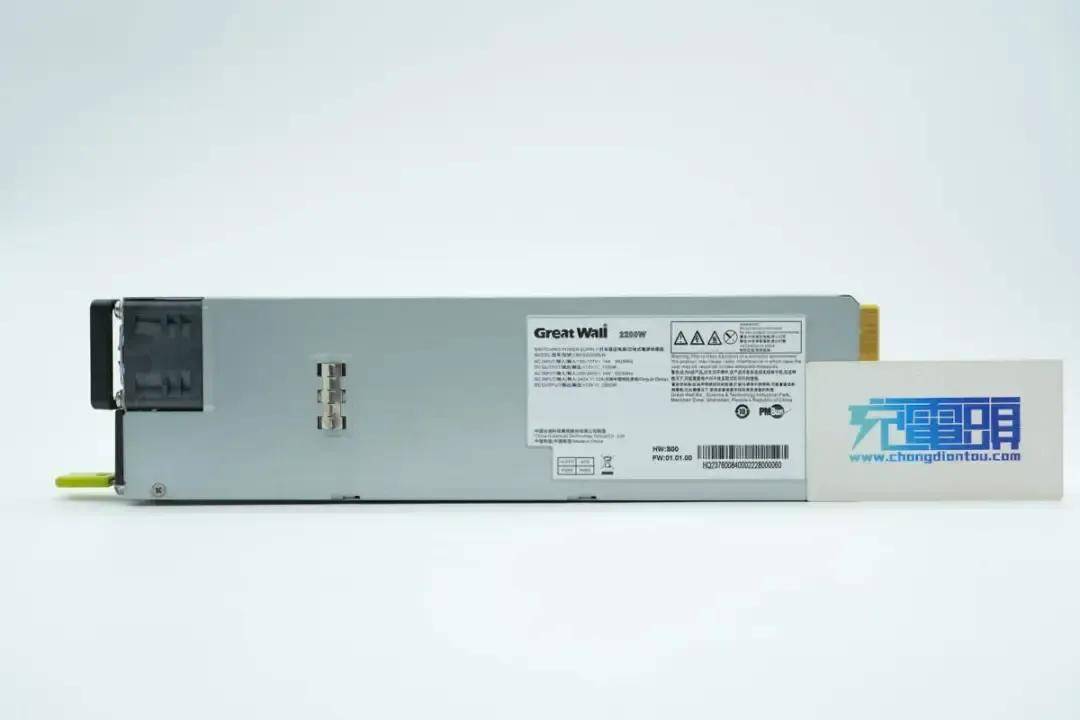 长城推出的一款2200W白金牌服务器电源,电源型号为CRPS2200DLW,支持100-240V宽电压输入,其中100-127V交流输入时电源输出功率为1100W,当200-240V交流输入或240V直流输入时,电源输出功率为额定2200W,电源模块输入端设有散热风扇,电源插座和指示灯,输出端设有金手指连接器。