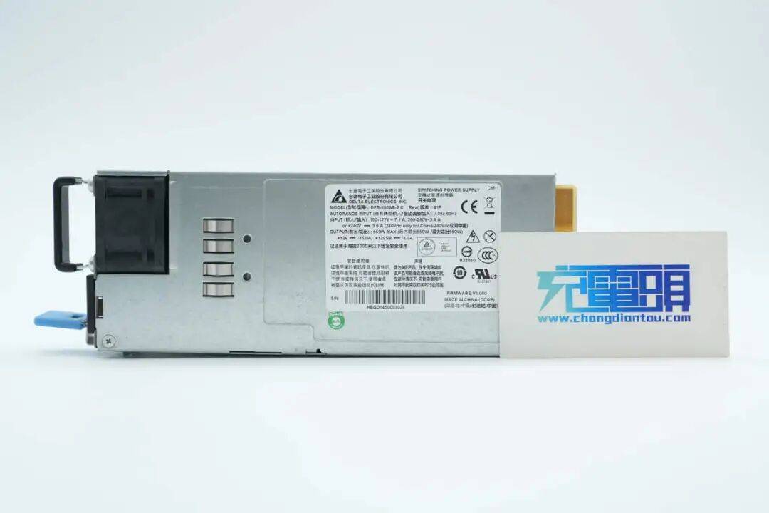 台达一款碳化硅服务器电源,这款电源型号为DPS-550AB-2,支持100-240V交流输入和240V直流输入,输出电压为12V,输出电流45A,待机电源输出为12V,输出电流3A,额定输出功率为550W。电源模块交流输入端设有散热风扇,电源插座,指示灯和脱扣把手,输出端设有金手指连接器。电源内部采用PFC+LLC+SR架构。
