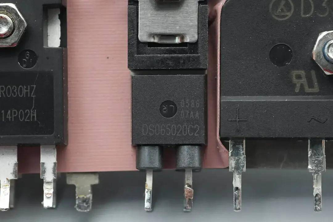 PFC采用的碳化硅整流管来自三安半导体,丝印DS065020C2,型号SDS065J020C2,规格为650V 20A,采用TO-220-2L封装。