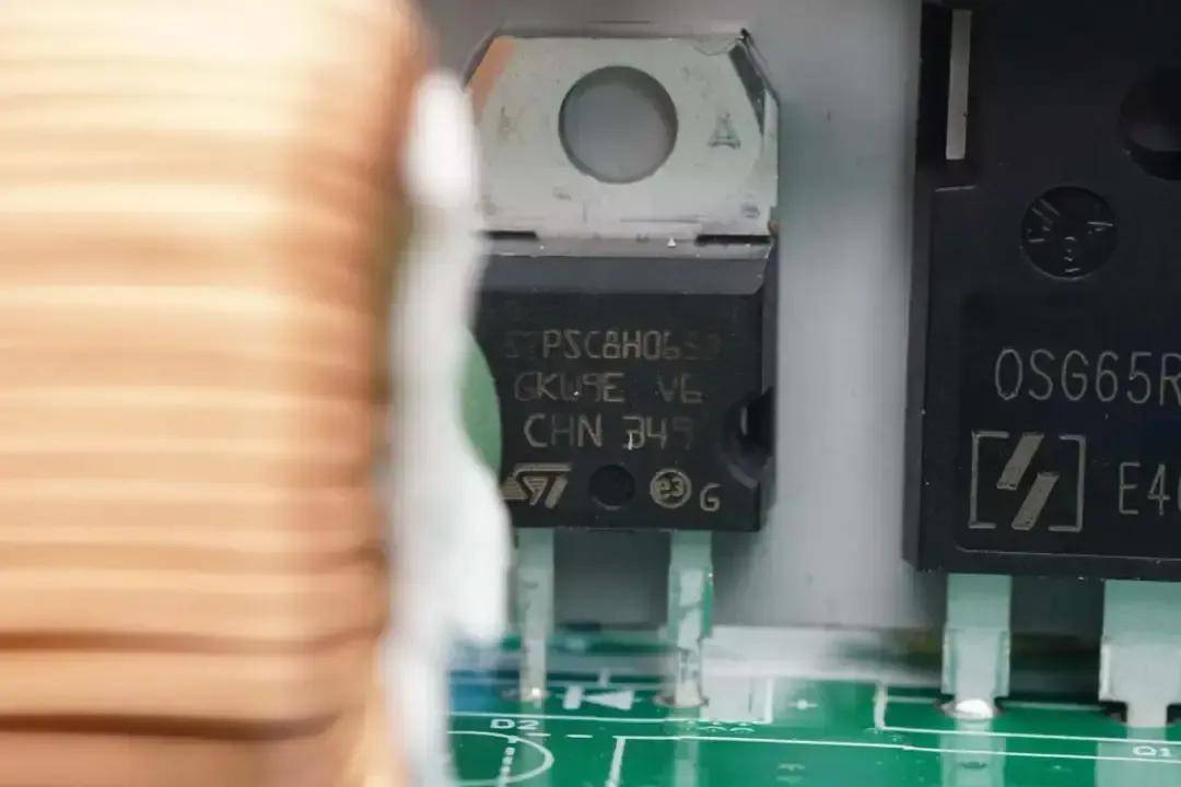 PFC整流管来自意法半导体,型号STPSC8H065D,为碳化硅二极管,规格为650V 8A,采用TO-220AC封装。