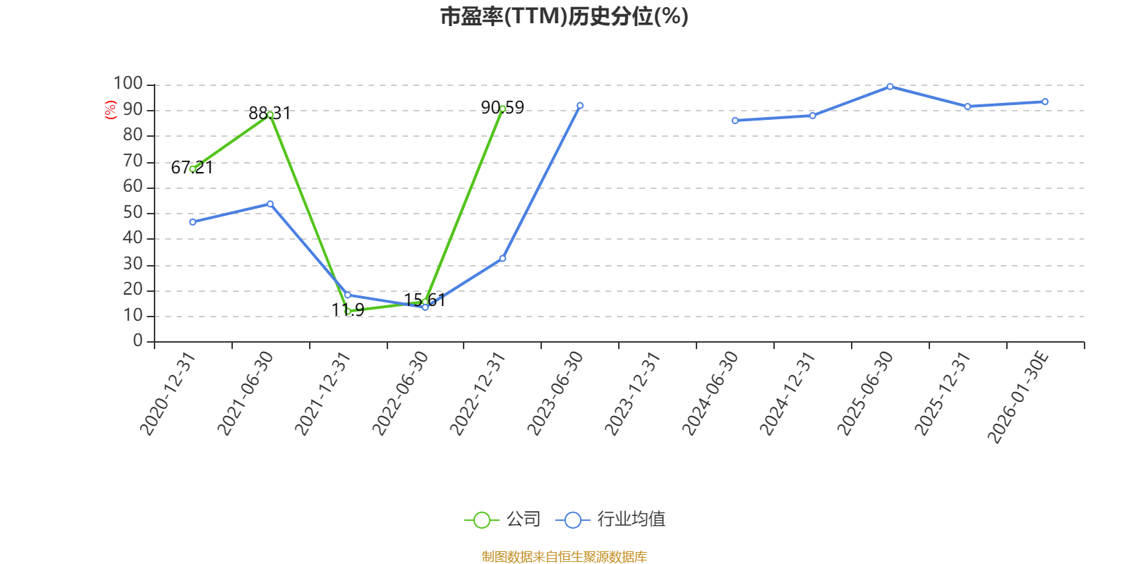 市盈率、市净率为负时,不显示当期分位数,会导致折线图中断。