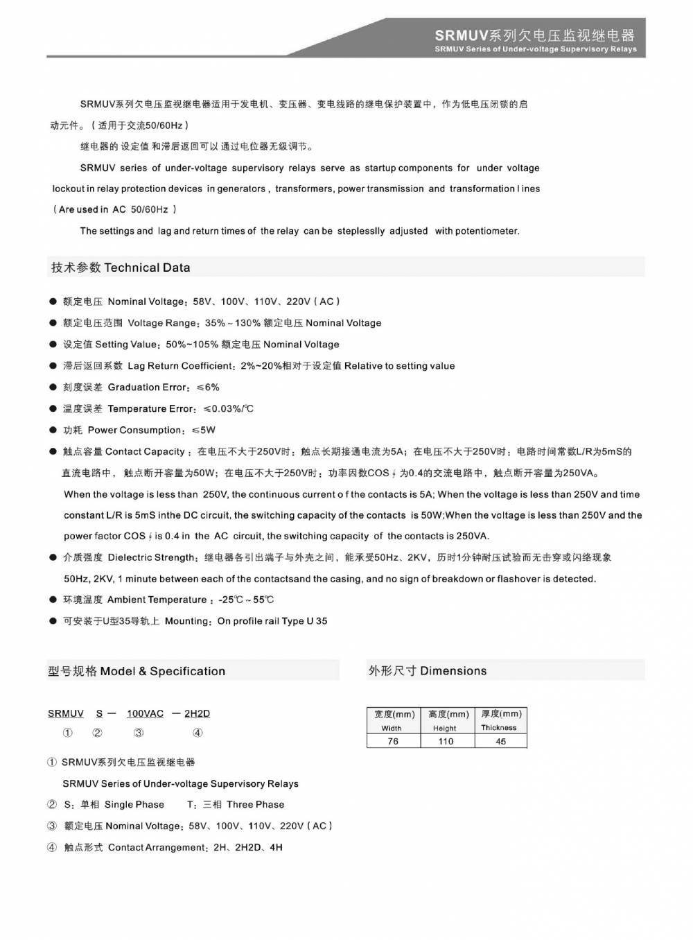 SRMUVS-58VAC-2H欠电压监视继电器;SRMUVS-100VAC-2H欠电压监视继电器;