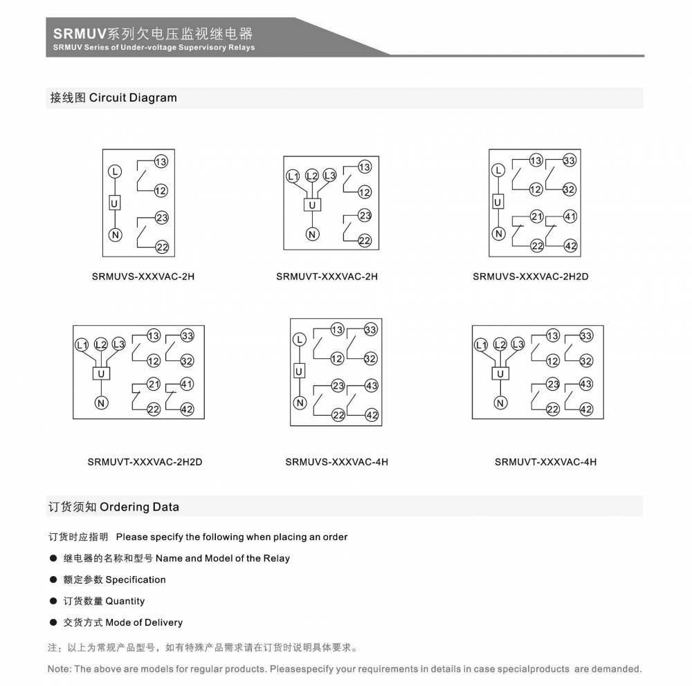 SRMUVT-58VAC-2H2D欠电压监视继电器;SRMUVT-100VAC-2H2D欠电压监视继电器;
