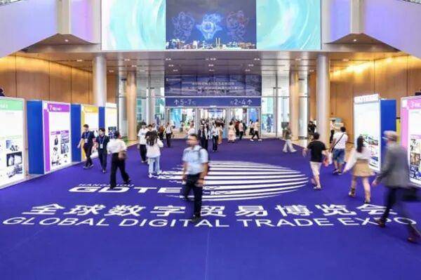 2025年9月25日,杭州,观众走过第四届全球数字贸易博览会会场。(新华社 发)
