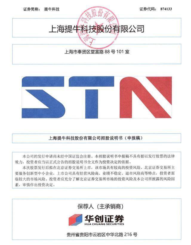 瑞财经 吴文婷近日,上海提牛科技股份有限公司(以下简称“提牛科技”)北交所IPO申请获受理,保荐机构为华创证券有限责任公司,保荐代表人为王江、杨晋逸,会计师事务所为天职国际会计师事务所(特殊普通合伙)。