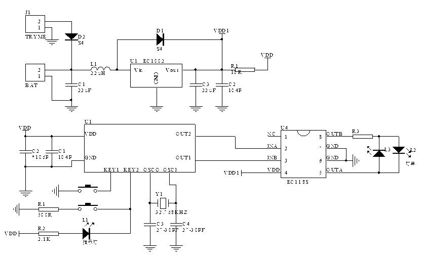KEY2(模式键):按一下L1亮,按一下L2亮,再按一下L1 L2对闪。