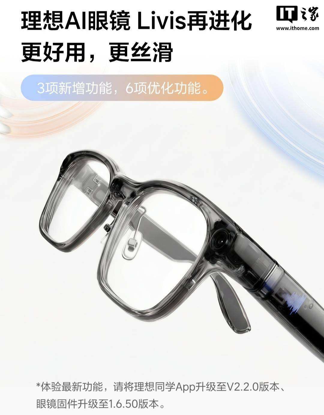 IT之家附理想 AI 眼镜 Livis 本次升级内容如下:
