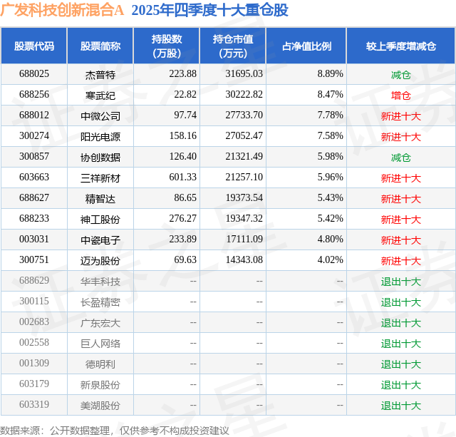 广发科技创新混合A的前十大重仓股如下: