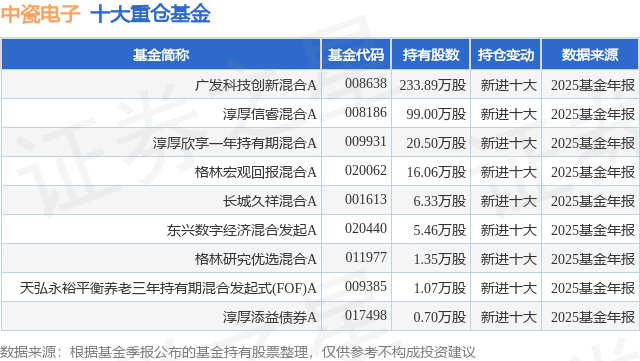 重仓中瓷电子的公募基金请见下表: