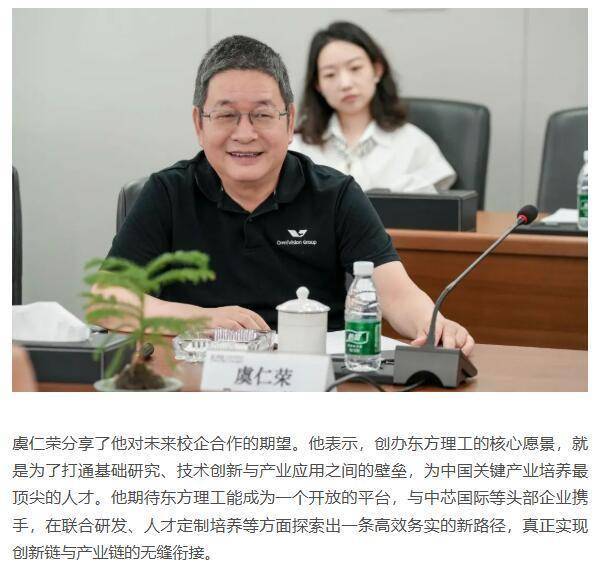 不仅仅是半导体设计企业,东方理工大学也引起国内头部晶圆制造厂商中芯国际(SH688981)的关注。7月3日,中芯国际董事长刘训峰便造访了东方理工大学。
